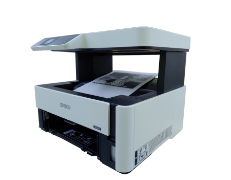 Простое и надёжное устройство (копир/принтер/сканер) для монохромной (чёрно-белой) печати и цветного сканирования. Преимущества по сравнению с лазерным принтером: минимальная себестоимость, низкое потребление энергии, отсутствие вредных испарений, экологичность и тишина в работе. Печать пигментными водоустойчивыми чернилами, надёжная печатающая головка. Ресурс чернил в комплекте около 8000 страниц. Компактность и надёжность этой модели позволяют использовать его как дома, так и для интенсивной работы в офисе.